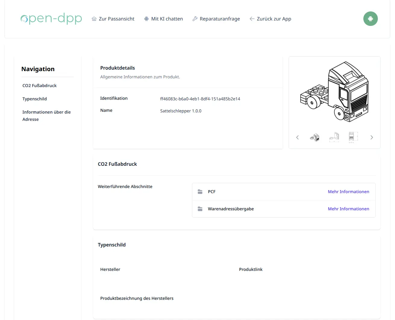 Dieses Video zeigt, wie open-dpp zur Erstellung und Interaktion mit digitalen Produktpässen verwendet werden kann.